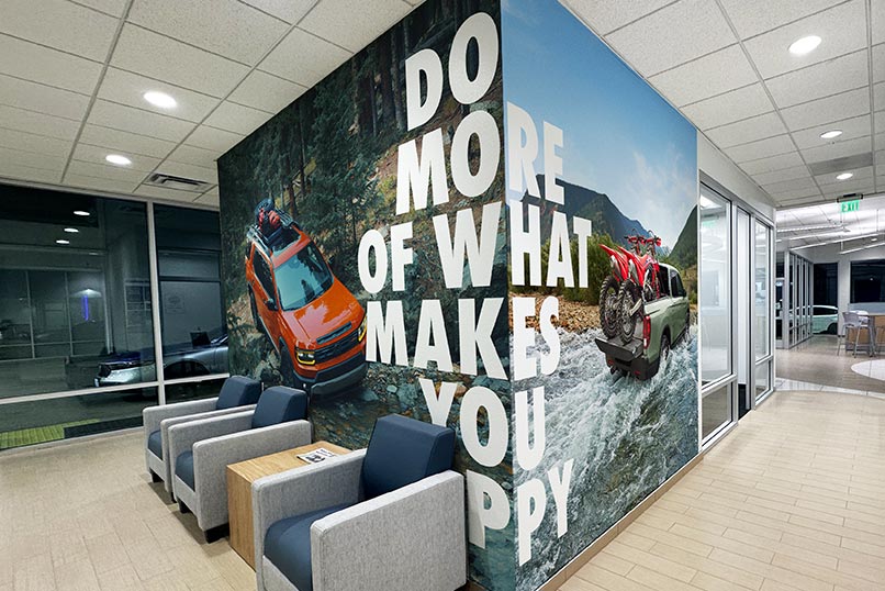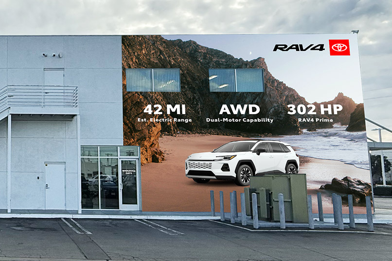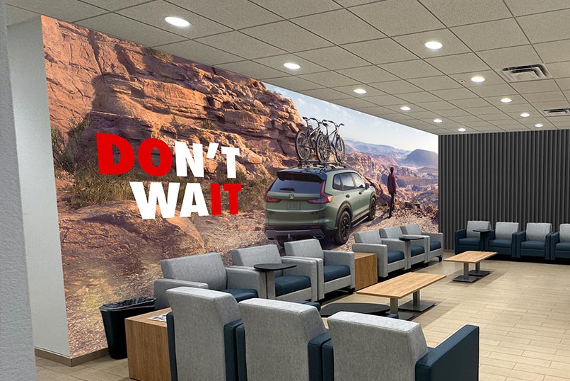 Large-format graphics across vinyl, rigid, fabric, backlit, and specialty substrates.